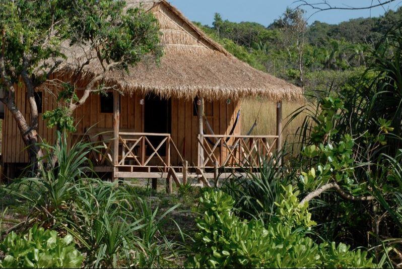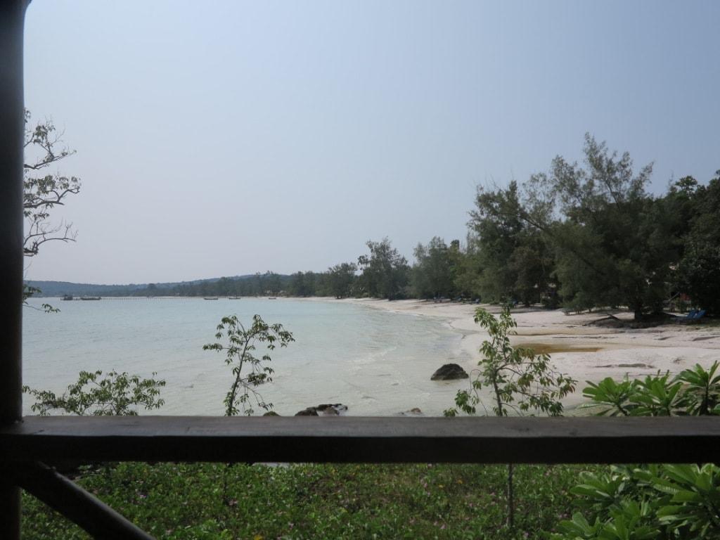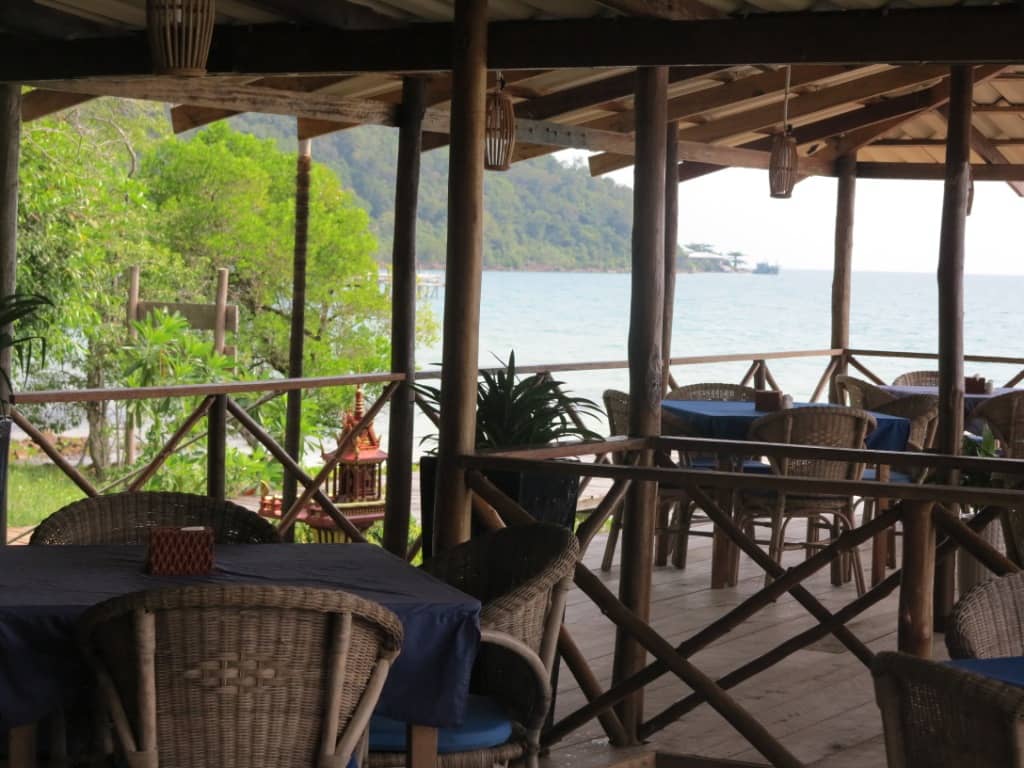 Bungalow de Charme plage en bois sur l'île de Koh Rung Samloem, deux grands lits doubles, salle de bains et balcon donnant sur l'océan. Laid back restaurant / bar avec un menu complet de l'Asie et inter.
